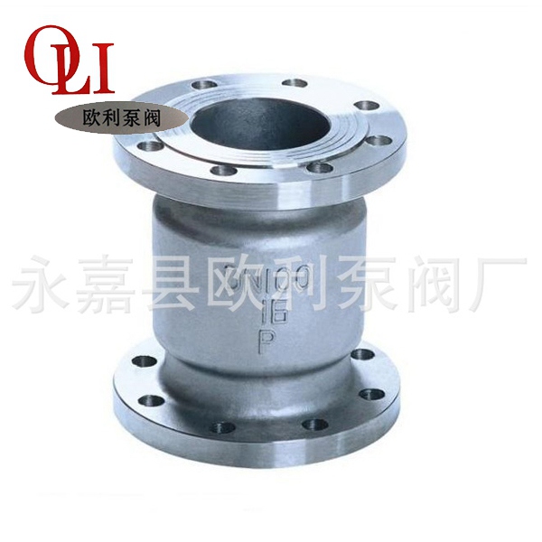 Vertical check valve is suitable for the small caliber pipeline, all kinds of pressure,temperature and medium control connect or disconnect the line media rely on the valve opening and closing device; the self weight and the fluid pressure differential in the realization of automatically to prevent fluid backflow pipeline